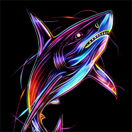 Vibrant Neon Shark Modern Digital Ocean